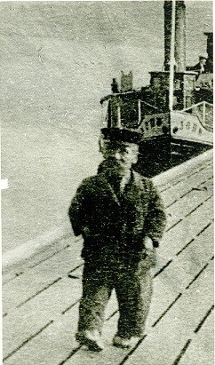 Jag var endast 4,5 år gammal då Erik avled 1909, varför det är en gåta hur jag kunde känna igen honom. När är då detta foto tagit? Enligt min uppfattning något av åren 1907-1909, troligen år 1907. Jag stöder mig på följande: På orginalfotot ligger vid kajen två passagerarbåtar ”John och Örn II”. Till år 1907 var ”John” jämte ”Örn” turbåtar i Örnsköldsviks inre skärgård med Erik Ölund Domsjö, som kapten på ”Örn”. 1907 Levererades ”Örn II” från Bonäsunds slip med ångmaskin från Jerveds Mekaniska Verkstad, alltså en hel Örnsköldsviks-produkt.