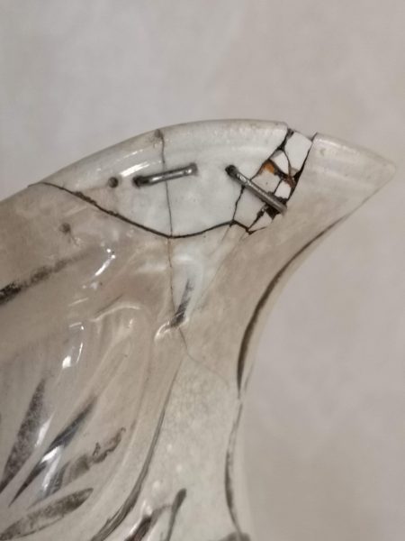 För att borra hål för klamren använde sig Erik av en gameldags s.k drillborr = en rund trästång (käpp) med en i nedre ändan fastsatt stålborr. En tvärslå av trä med hål i mitten där ”käppen” kunde gå runt. Från tvärslåns ändar löpte ett smalt rep flera varv runt ”käppen” på sådans sätt att om man förde tvärslån upp och ner så gick käppen med borren runt. Repet lindades på och av genom att man förde tvärslån upp och ner. Erik var så liten att när han sinkade i sitt hem så minns jag att han stod han på golvet och hade arbetsstycket på en stol framför sig.